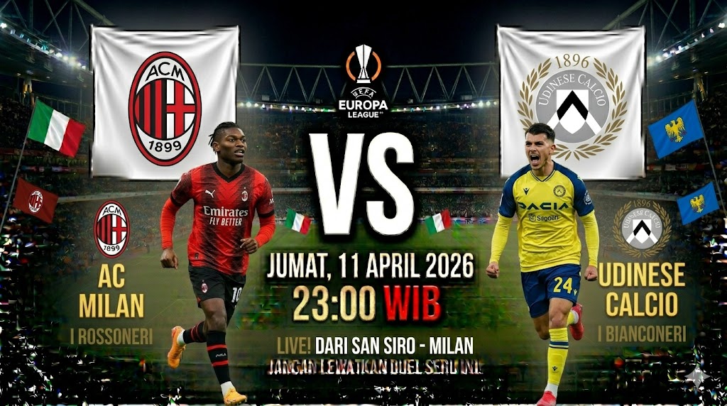Laga krusial di kancah Eropa akan tersaji di San Siro saat raksasa Italia, AC Milan, menjamu Udinese pada Jumat, 11 April 2026 pukul 23:00 WIB. Duel sesama tim Serie A ini menjadi penentu siapa yang layak melangkah lebih jauh di kompetisi Europa League musim ini.