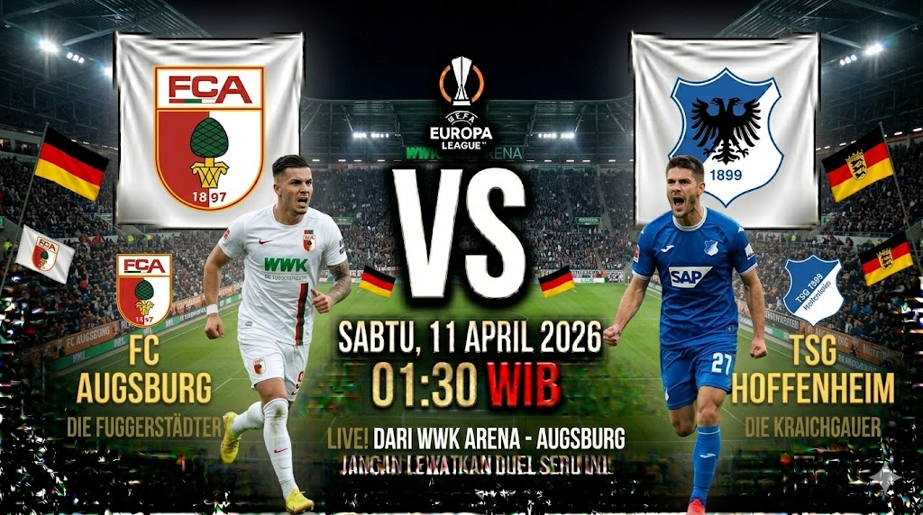 Pertandingan krusial di kancah Eropa akan menyajikan duel sesama wakil Jerman saat FC Augsburg menjamu TSG Hoffenheim di WWK Arena pada Sabtu, 11 April 2026 pukul 01:30 WIB. Laga leg kedua perempat final ini diprediksi akan berjalan dengan intensitas tinggi khas Bundesliga demi memperebutkan satu tiket ke babak semifinal.