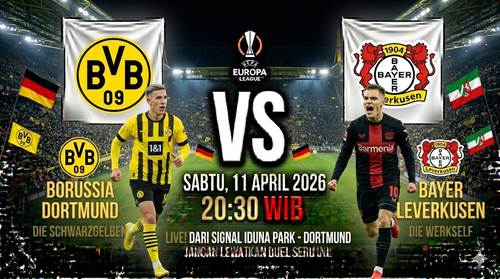 Pertandingan akbar akan tersaji di Signal Iduna Park saat Borussia Dortmund menjamu Bayer Leverkusen dalam leg kedua perempat final Europa League pada Sabtu, 11 April 2026 pukul 20:30 WIB. Duel sesama wakil Jerman ini diprediksi akan menjadi salah satu laga paling menghibur dengan intensitas serangan yang tinggi.