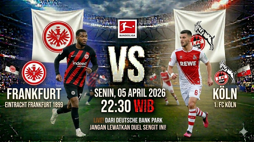 Pertandingan antara Eintracht Frankfurt dan 1. FC Köln di Deutsche Bank Park pada 5 April 2026 pukul 22:30 WIB menjadi laga penting bagi kedua tim. Frankfurt berupaya mengamankan posisi di zona Eropa, sementara Köln sedang berjuang menjauh dari ancaman degradasi.