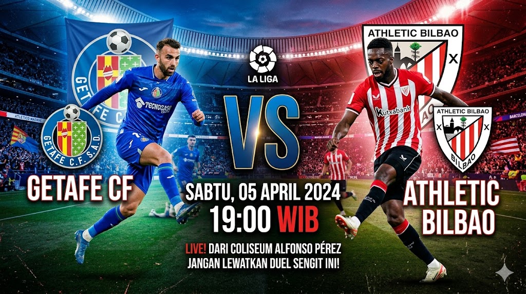 Pertandingan antara Getafe dan Athletic Bilbao yang akan berlangsung di Stadion Coliseum pada 5 April 2026 pukul 19:00 WIB diprediksi akan menjadi pertarungan yang sangat ketat dan cenderung defensif. Kedua tim saat ini berada di posisi yang sangat berdekatan di klasemen La Liga (peringkat 8 dan 9) dengan jumlah poin yang sama (38 poin).