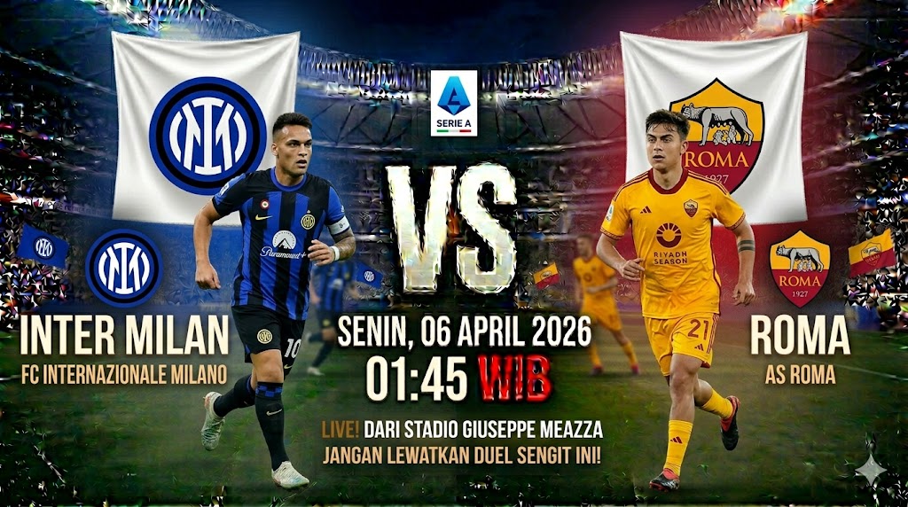 Pertandingan Big Match antara Inter Milan dan AS Roma di San Siro pada 6 April 2026 pukul 01:45 WIB merupakan laga paling dinanti di pekan ke-31 Serie A. Inter Milan berupaya mengamankan posisi puncak, sementara Roma sedang berjuang keras menembus zona empat besar.