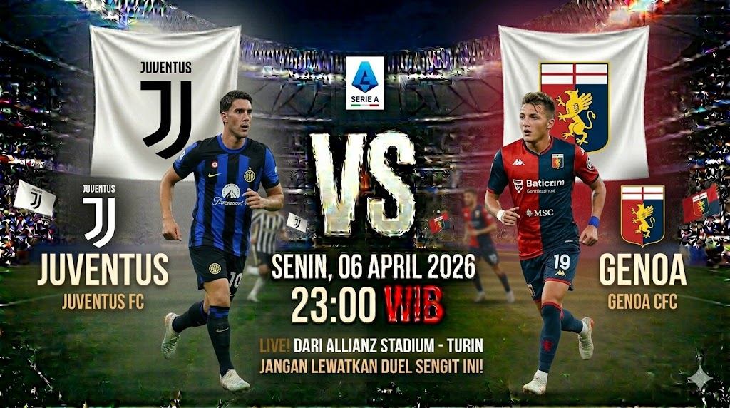 Pertandingan antara Juventus dan Genoa di Allianz Stadium pada Senin, 6 April 2026 pukul 23:00 WIB akan menjadi laga krusial bagi “Si Nyonya Tua” untuk terus bersaing di papan atas Serie A. Juventus saat ini berada di peringkat ke-5, sementara Genoa tertahan di posisi ke-13.