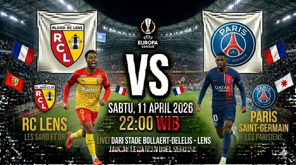Pertandingan seru di kancah domestik Prancis akan mempertemukan RC Lens melawan raksasa Paris Saint-Germain (PSG) di Stade Bollaert-Delelis pada Sabtu, 11 April 2026 pukul 22:00 WIB. Lens yang dikenal sebagai “pembunuh raksasa” saat bermain di kandang akan menguji konsistensi PSG dalam upaya mereka mempertahankan puncak klasemen.