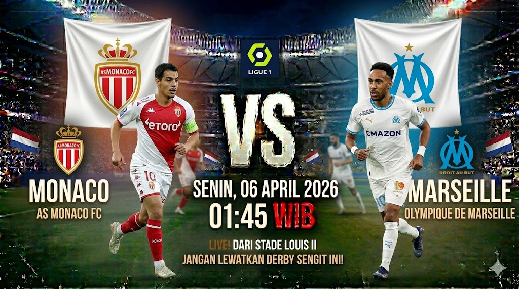 Pertandingan antara AS Monaco dan Olympique Marseille di Stade Louis II pada 6 April 2026 pukul 01:45 WIB diprediksi akan menjadi duel papan atas yang sangat sengit. Marseille berupaya mempertahankan posisi di tiga besar, sementara Monaco sedang dalam tren positif untuk menembus zona Liga Champions.