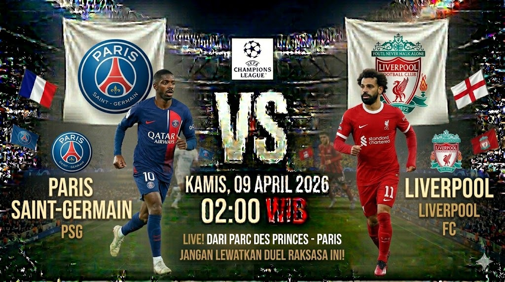 Pertandingan leg pertama perempat final Liga Champions antara Paris Saint-Germain dan Liverpool akan berlangsung di Parc des Princes pada Kamis, 9 April 2026 pukul 02:00 WIB. Laga ini merupakan ulangan babak 16 besar musim lalu, di mana PSG berhasil menyingkirkan Liverpool lewat adu penalti yang dramatis.