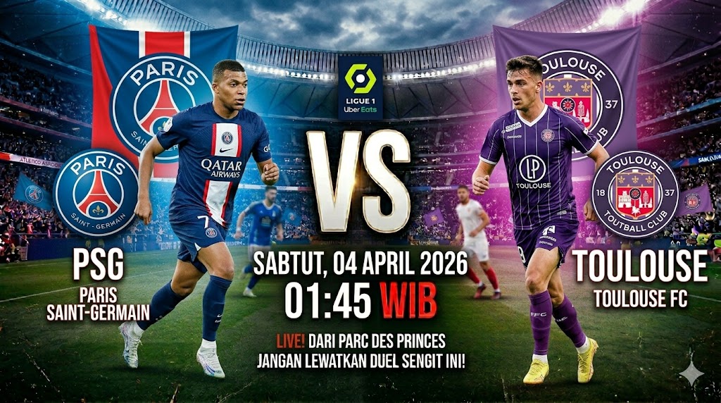Pertandingan antara Paris Saint-Germain (PSG) dan Toulouse di Parc des Princes pada 4 April 2026 pukul 01:45 WIB diprediksi akan menjadi panggung dominasi sang pemuncak klasemen sementara Ligue 1.