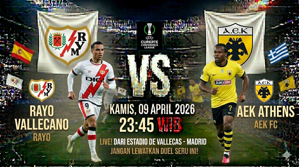 Pertandingan Leg 1 Perempat Final UEFA Conference League antara Rayo Vallecano dan AEK Athens akan berlangsung di Estadio de Vallecas pada Kamis, 9 April 2026 pukul 23:45 WIB. Ini adalah pencapaian bersejarah bagi Rayo yang tampil impresif di kompetisi Eropa musim ini.