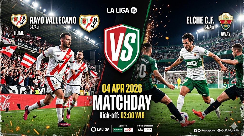 Rayo Vallecano akan bermain di kandang sendiri (Estadio de Vallecas), tempat di mana mereka biasanya tampil lebih solid dan sulit dikalahkan. Namun, Elche datang dengan kepercayaan diri tinggi setelah menghancurkan Rayo 4-0 di pertemuan pertama musim ini.