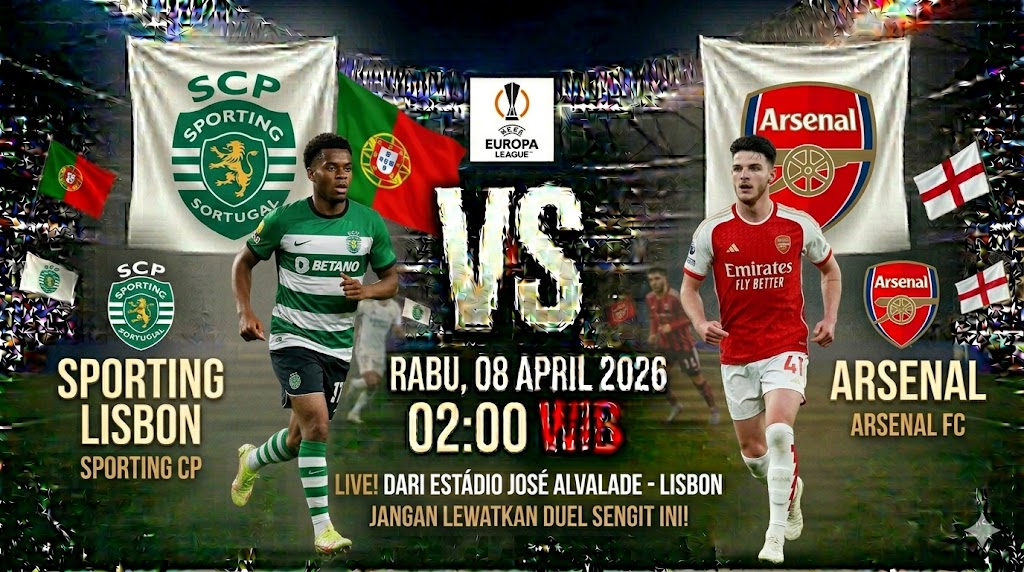 Pertandingan babak Perempat Final Liga Champions (Leg 1) antara Sporting CP dan Arsenal akan berlangsung di Stadion José Alvalade pada Rabu, 8 April 2026 pukul 02:00 WIB. Laga ini mempertemukan wakil Portugal yang tangguh di kandang dengan pemuncak klasemen sementara Liga Champions, Arsenal.