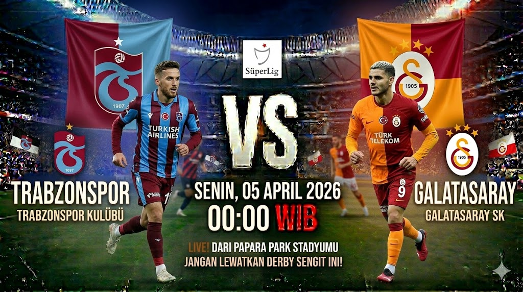 Pertandingan antara Trabzonspor dan Galatasaray di Papara Park pada 5 April 2026 pukul 00:00 WIB merupakan salah satu duel paling panas di Süper Lig Turki. Kedua tim saat ini sedang bersaing ketat di papan atas klasemen.